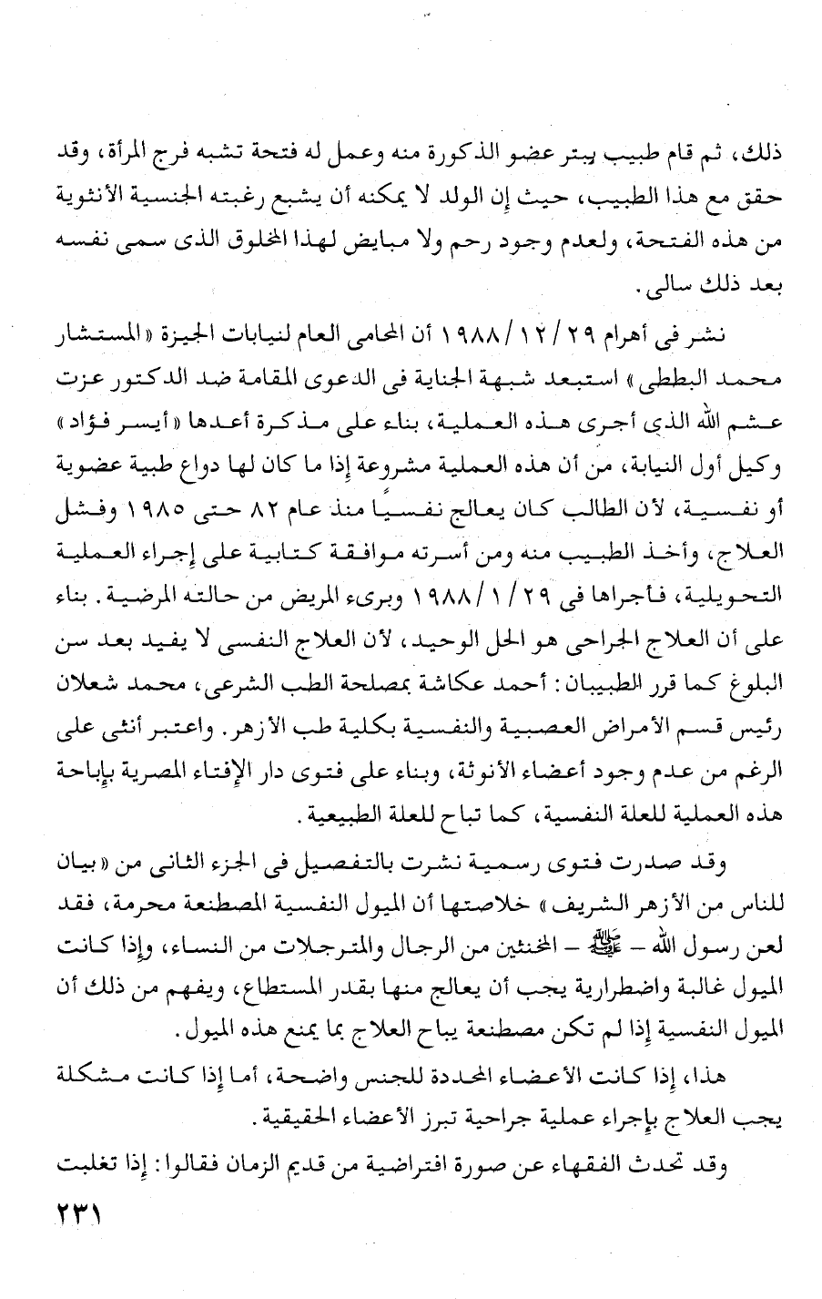 للناس من الا! زهر الشريف " خلاصتها أن الميول النفسية المصطنعة محرمة، فقد