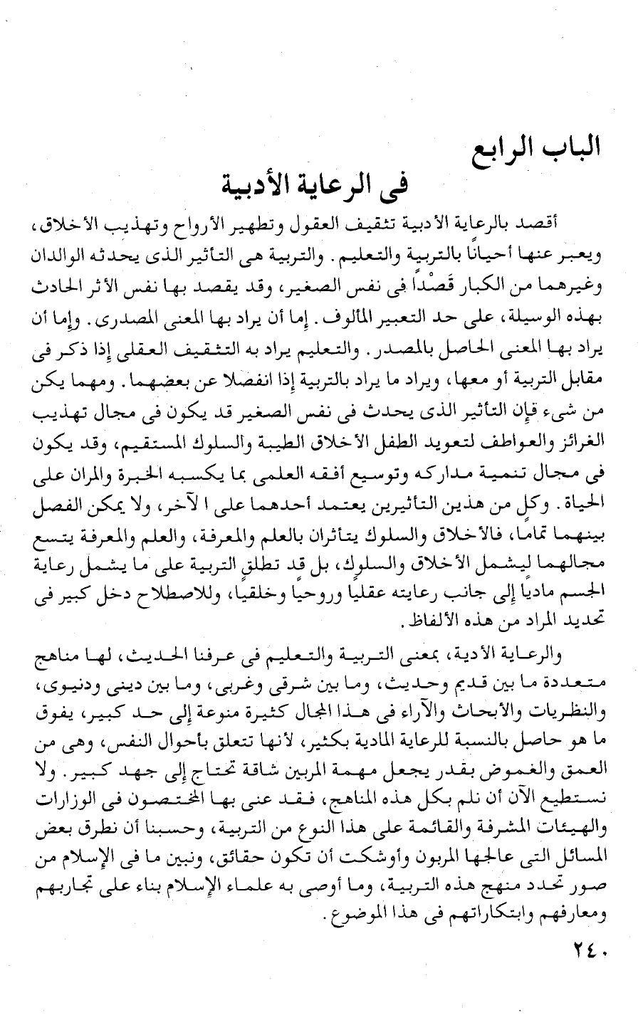 والرعاية الا! دية، بمعنى التربية والتعليم فى عرفنا الحديث، لها مناهج