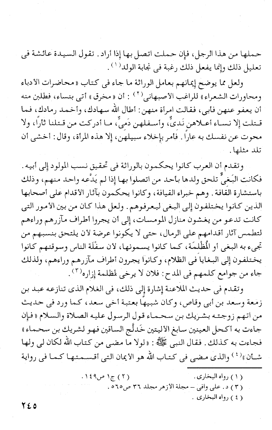 وتقدم أن العرب ثانوا يحكمون بالوراثة فى تحقيق نسب المولود إلى أبيه.