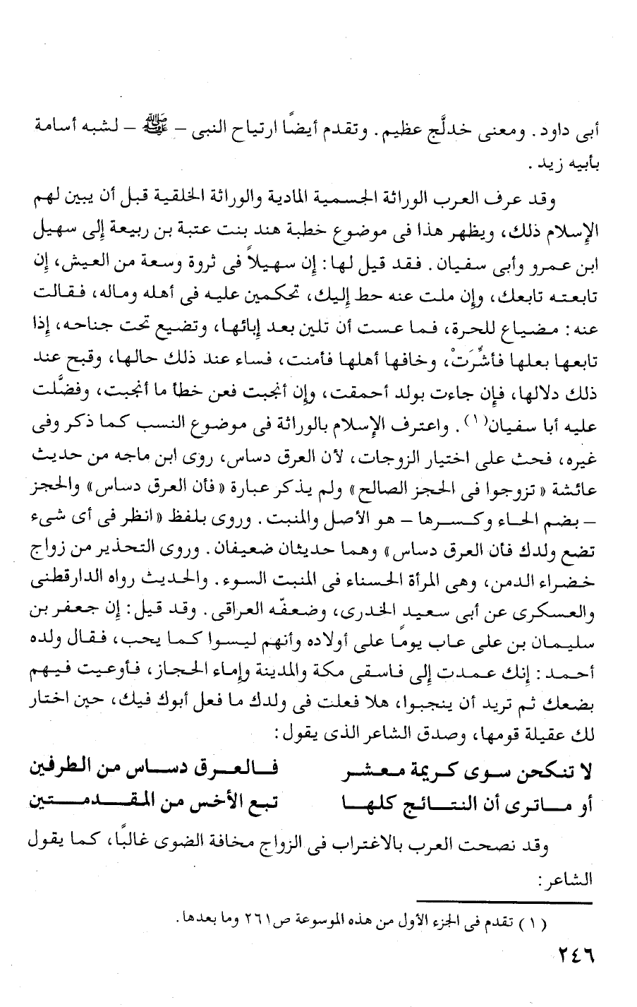 عليه أبا سفيان (1). واعترف الإسلام بالوراثة فى موضوع النسسب كما ذكر وفى