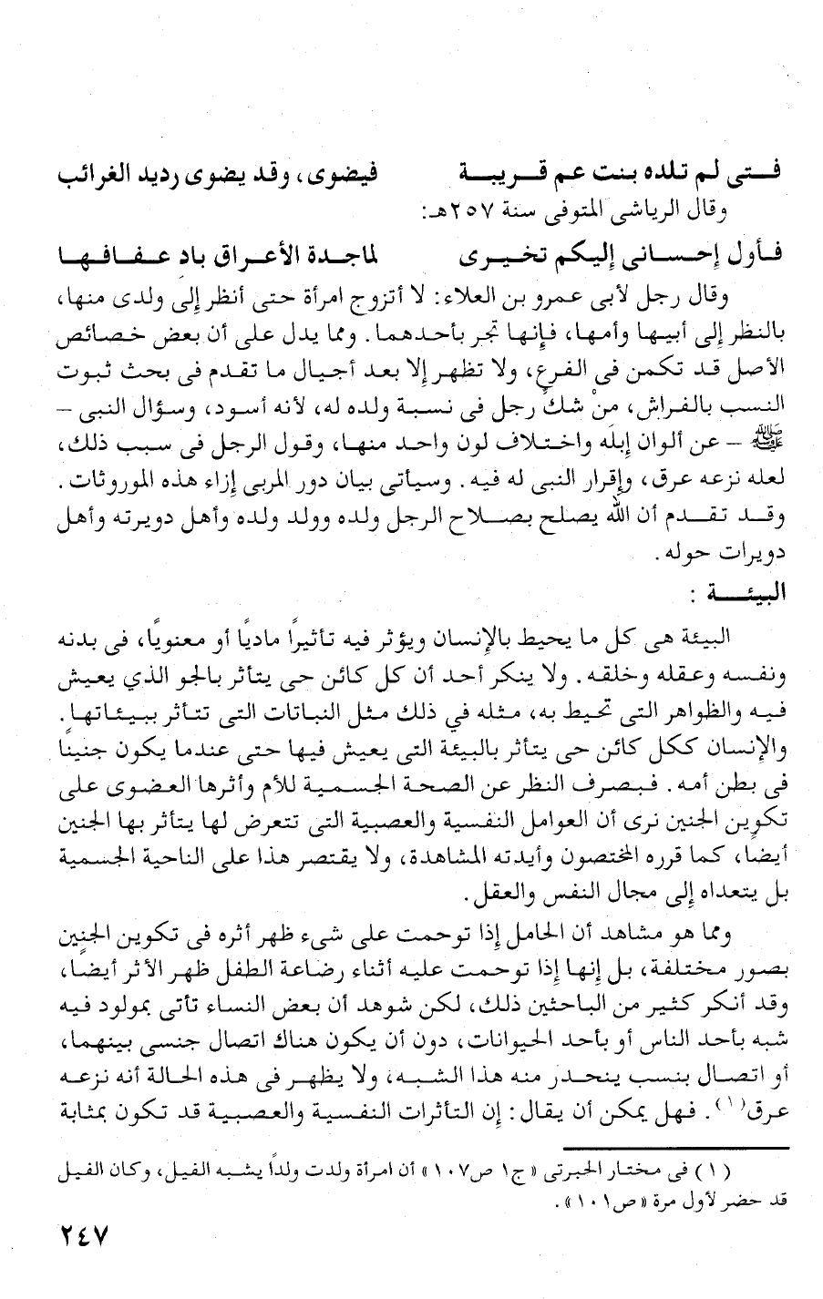 عرقأ 1). فهل -طكن أن يقال: إن الط ثرات النف! سية والعصبية قد تكودن بمثابة