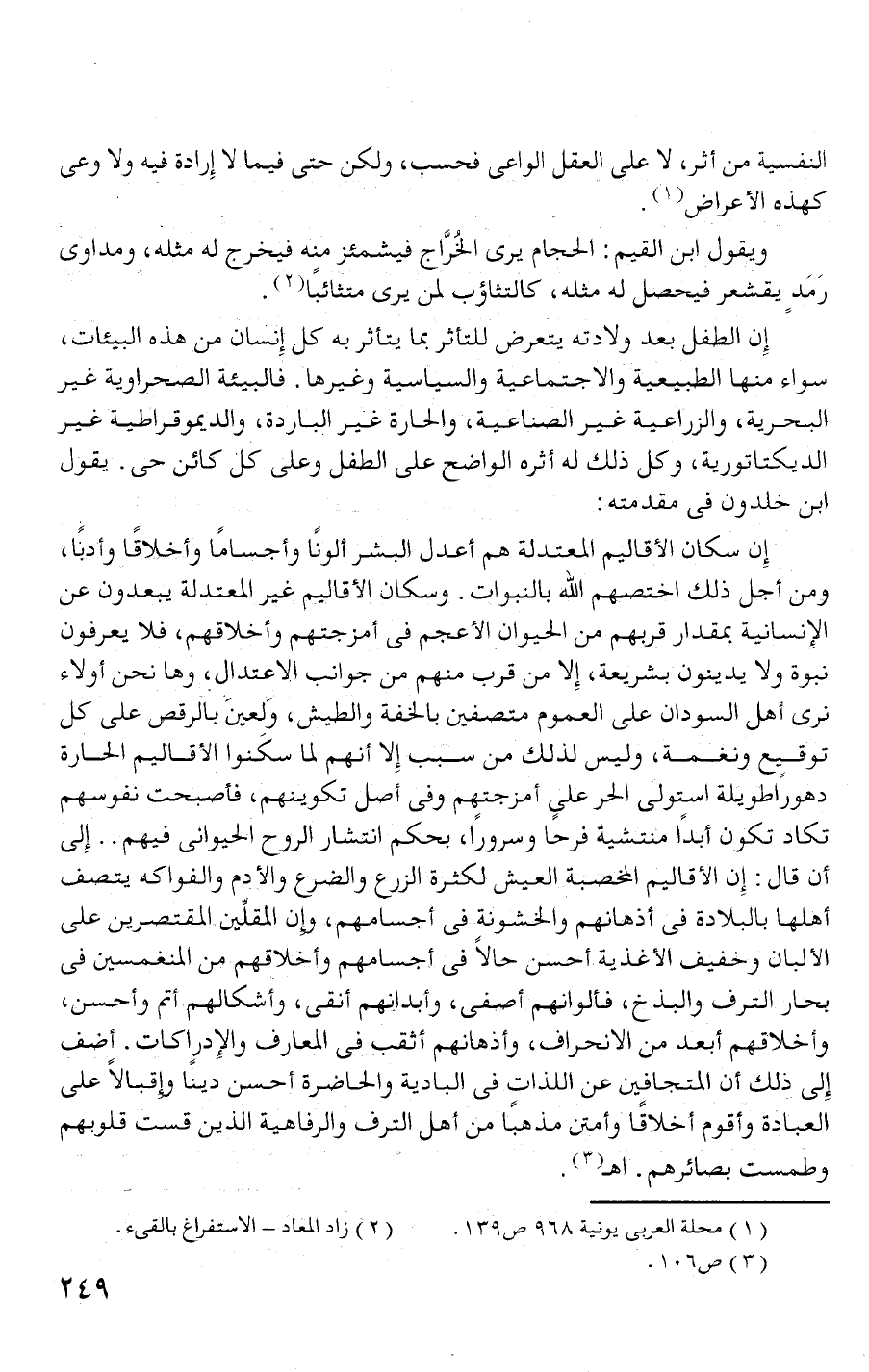 إن سكان الأ قاليم المعتدلة هم أعدل البشر آلونا وأجساما وأخلاقا وأدبا،