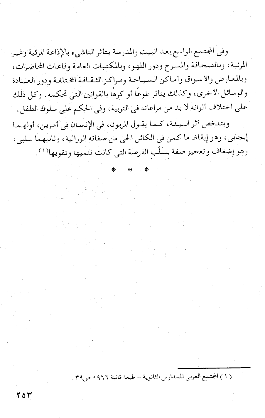 ويتلخصأثر البيئة، ثما يقول المربون، فى الإنسان فى أمرين، أولهما