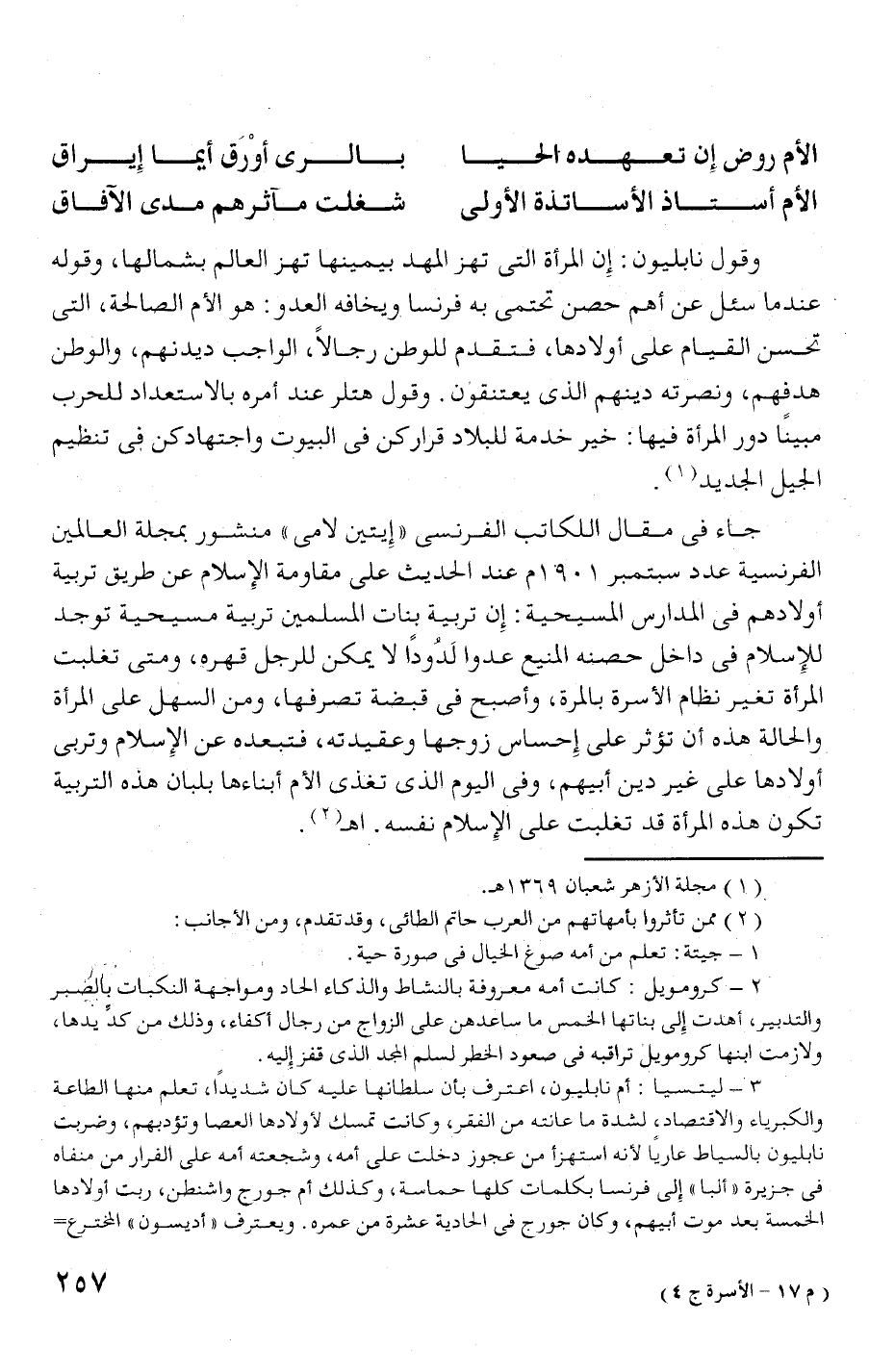 الفرنسية عدد سبتمبر 1 0 9" أم عند الحديث على مقاومة الإسلام عن طريق تربية