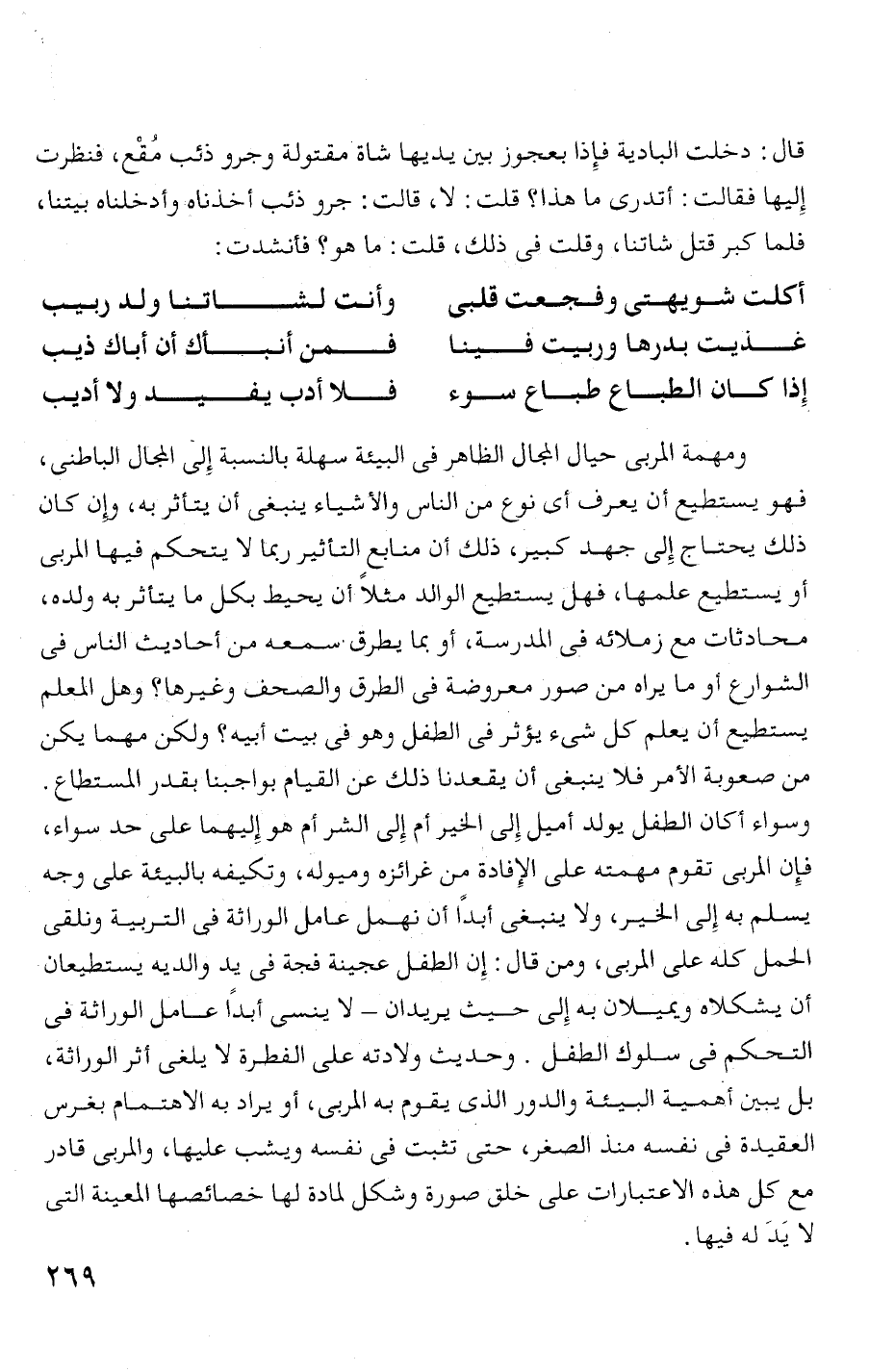 يسلم به إلى الخير، ولا ينبغى أبدا أن نهمل عامل الوراثة فى التربية ونلقى
