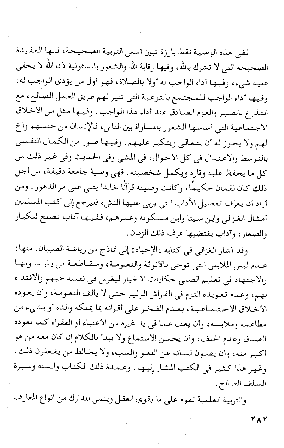 شفئ هذه الوصية نقط بارزة تبين أسس التربية الصحيحة، فيها العقيدة