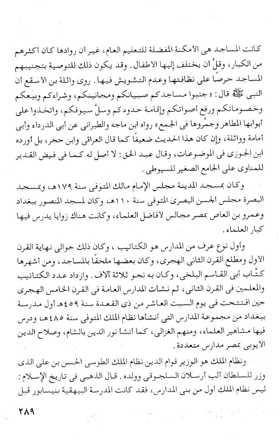 فيها مشاهير العلماء، ومنهم الغزالى، صما أنشأ نور الدين بالشام، وصلاح الدين