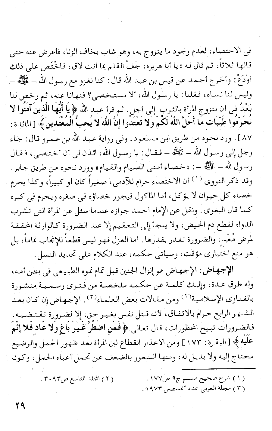 رجل إلى رسول الله - ع! يط - فقال: يا رسول الله، ائذن لى أن أختصى، فقال
