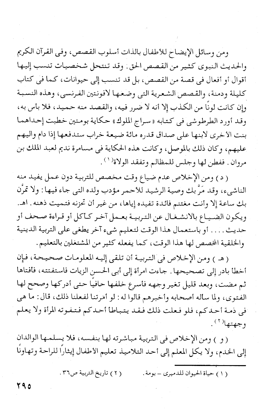 (د) ومن الإخلاص عدم ضياخ وقت مخصص للتربية دون عمل يفيد منه