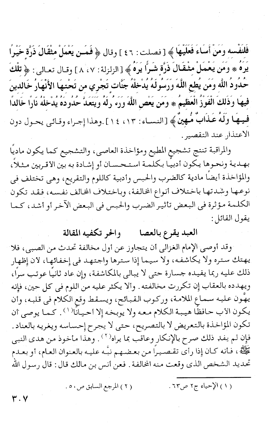 والمراقبة تنتج تمنمجيع المطيع ومؤاخذة العاصى، والتشجيع ثما يكون ماديا