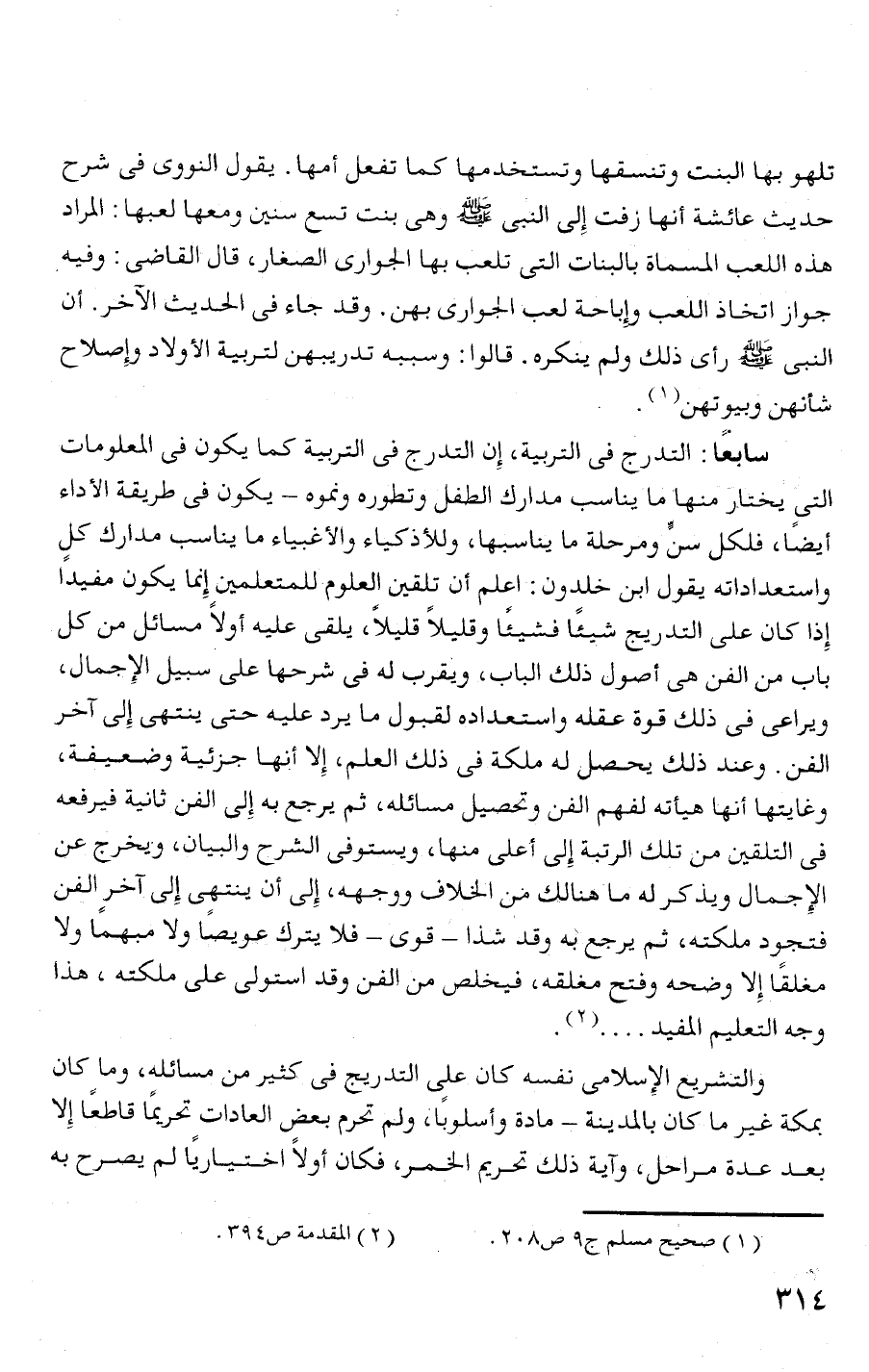 سابعا: التدرج فى التربية، إن التدرج فى التربية ثما يكون فى المعلومات