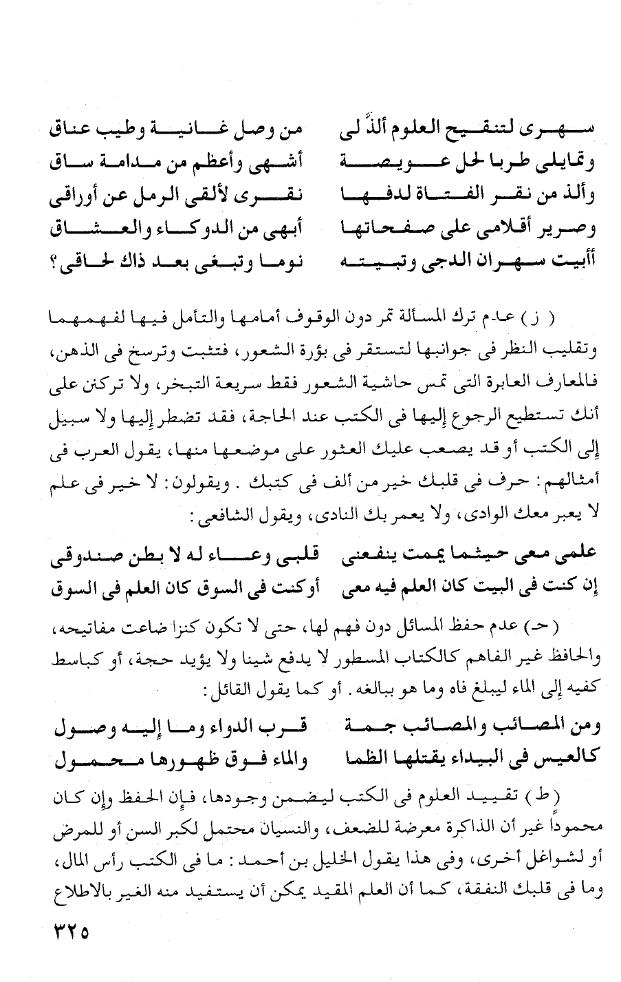 أو لشواغل أخرى، وفى هذا يقول الخليل بن أحمد: ما فى الكتب رأس المال،