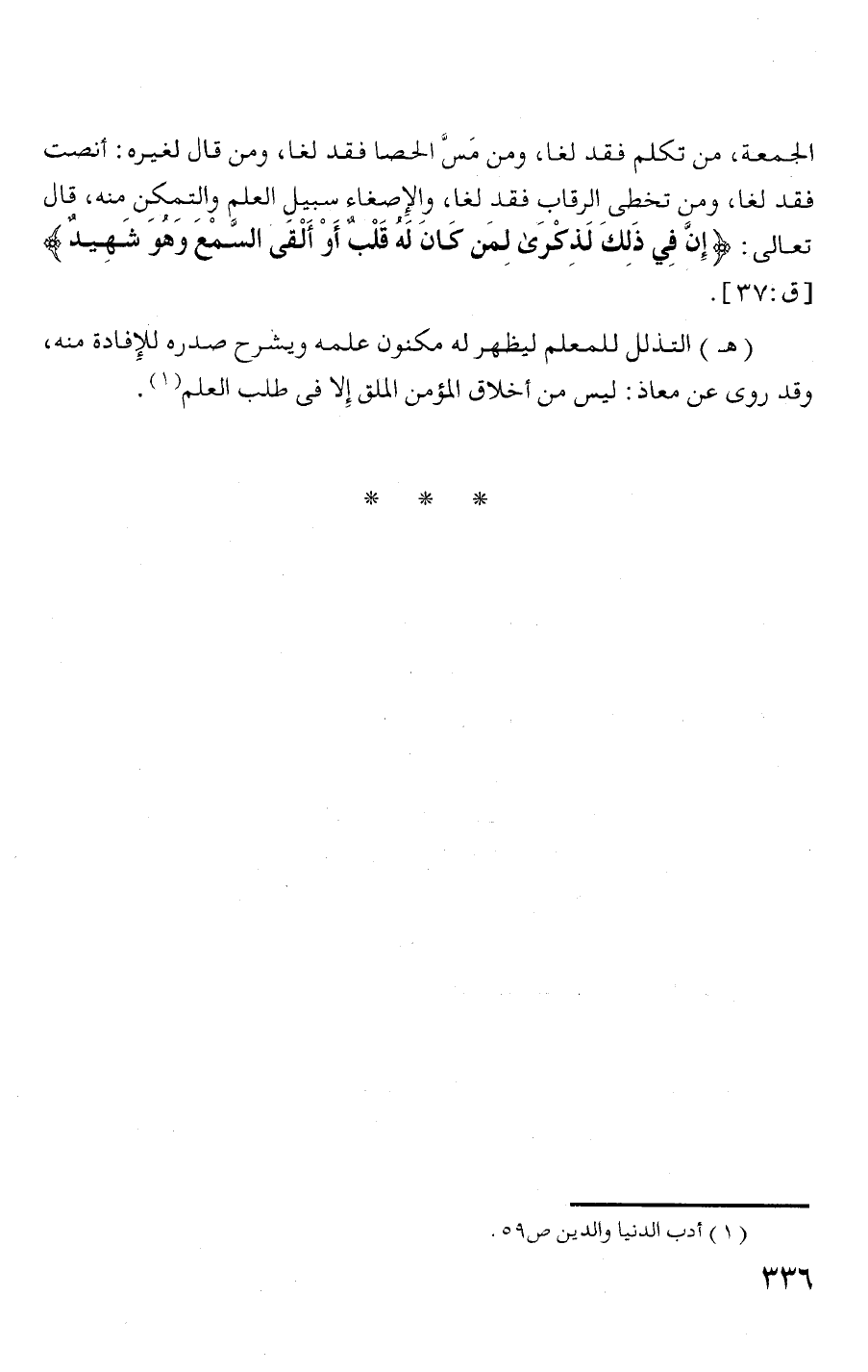 وقد روى عن معاذ: ليس من أخلا! تى المؤمن الملق إلا فى طلب العلم (1).