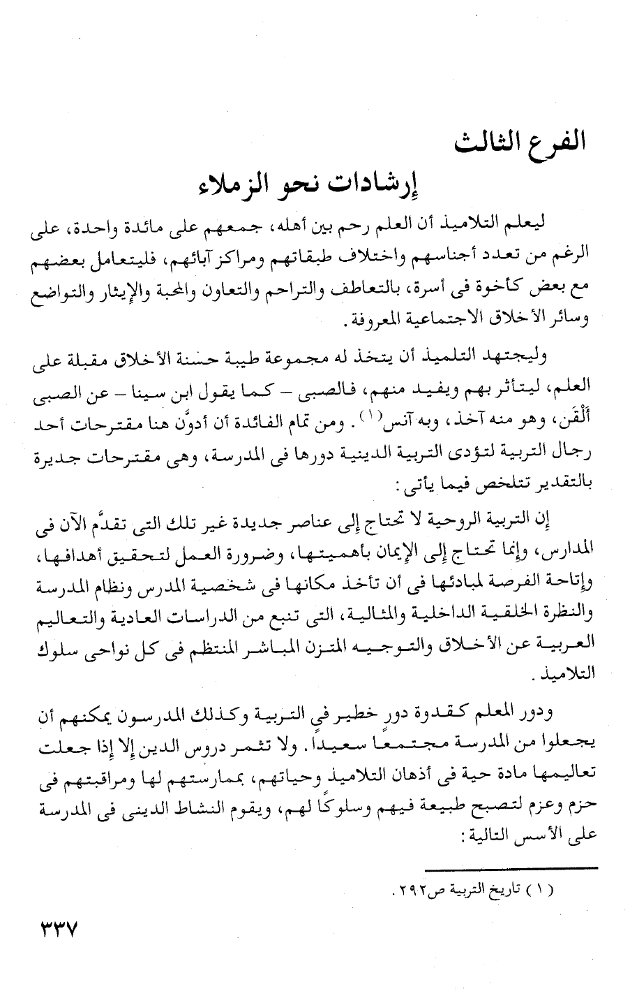 وليجتهد التلممذ أن يتخذ له مجموعة طيبة حسنه الا! خلاق مقبلة على