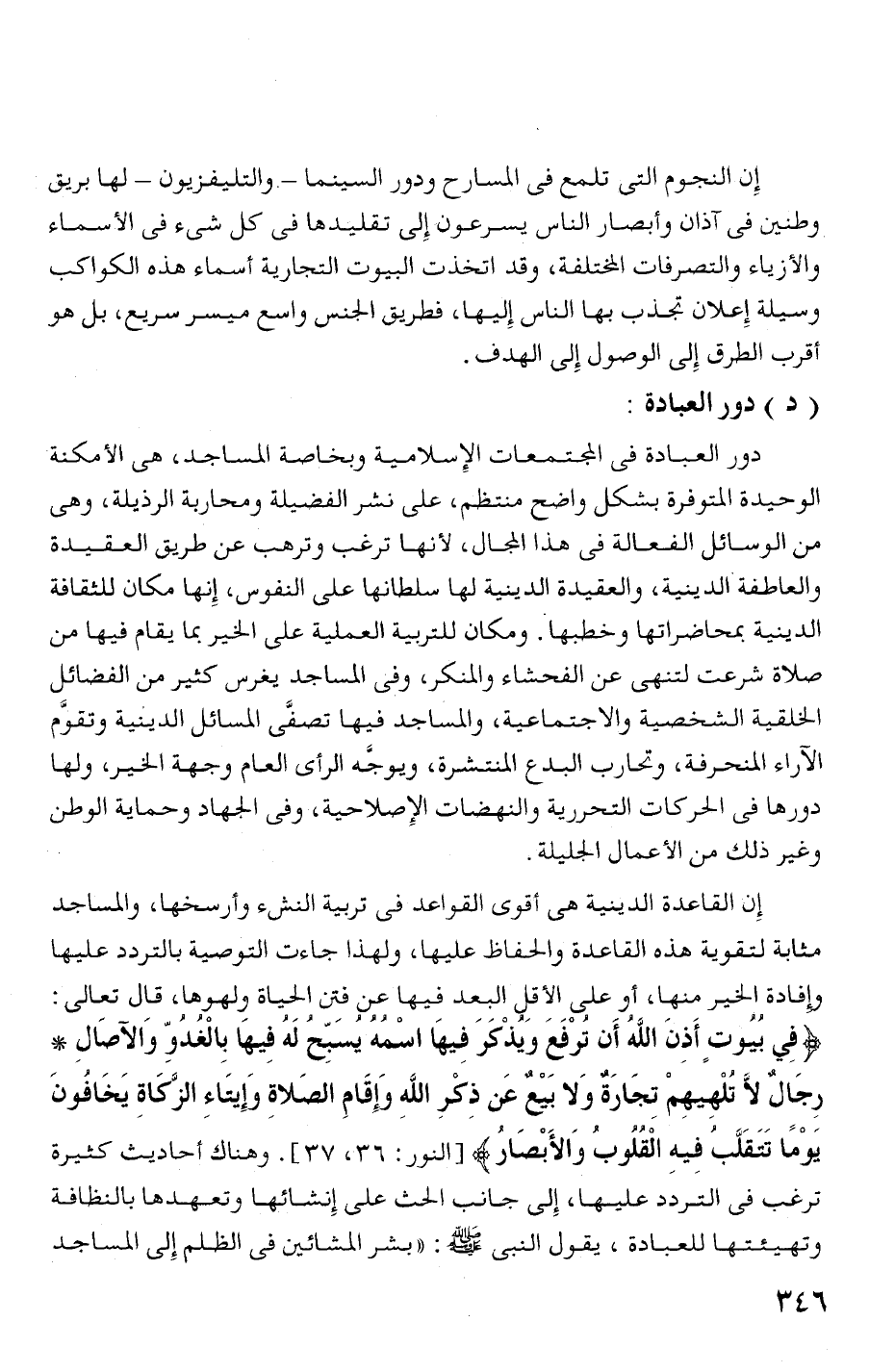دور العبادة فى المجتمعات الإسلامية وبخاصة المساجد، هى الأ مكنة