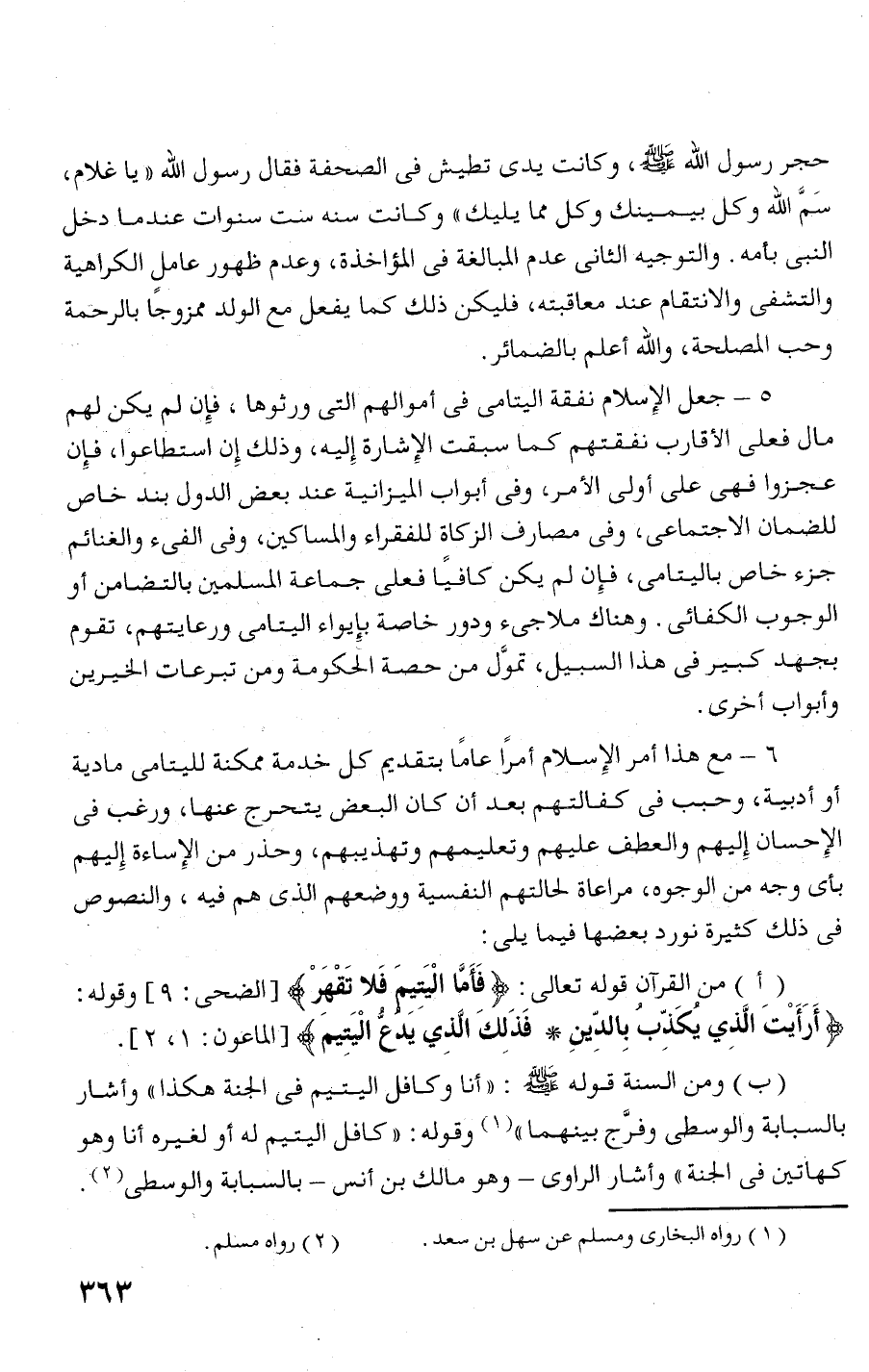 6 - مع هذا أمر الإسلام أمرا عاما بتقديم كل خدمة ممكنة لليتامى مادية