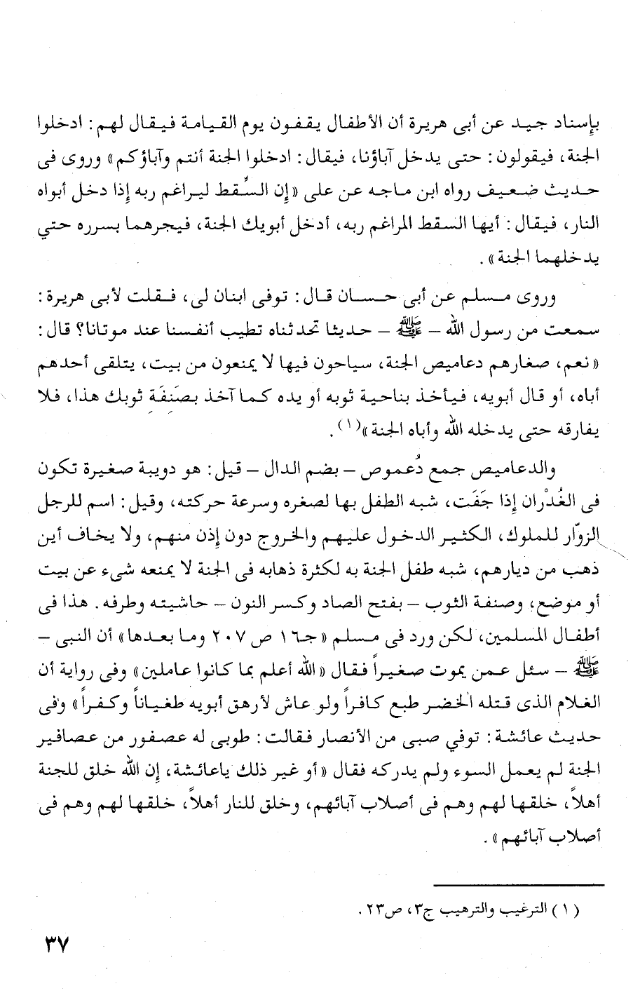 أطفال المسلمين، لكن ورد فى مسلم ((بر 6 1 ص 7 0 2 وما بعدها " أن النبى-