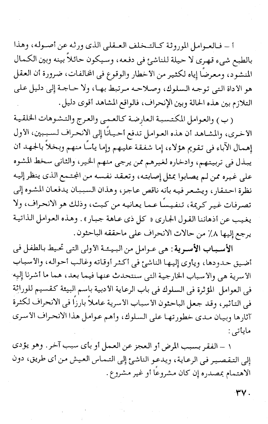 الأ خرى، والمشاهد أن هذه العوامل تدفع أحيانا إلى الانحراف لسببين، الأ و ل