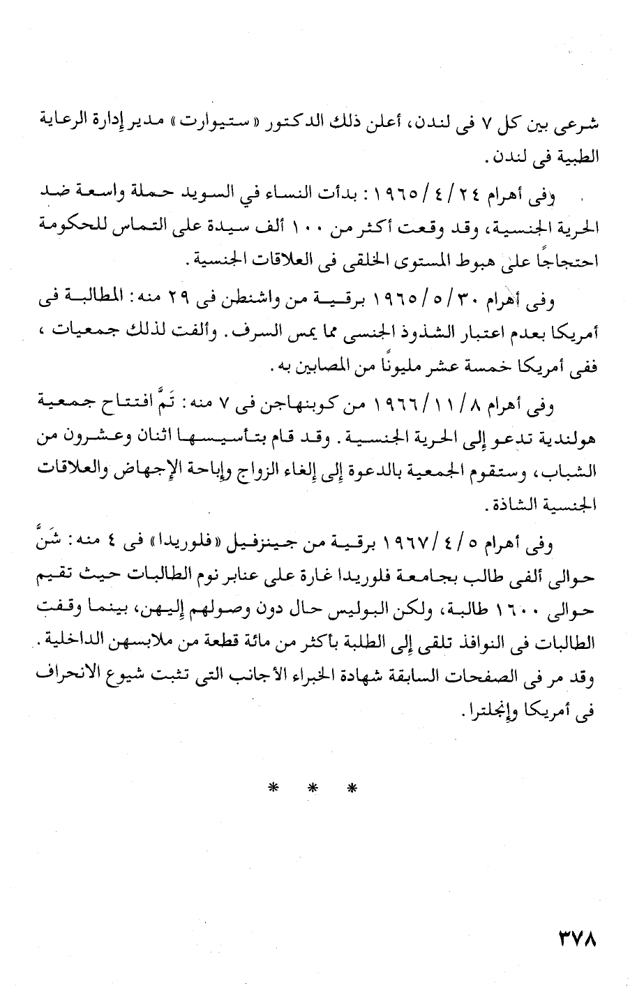 احتجاجا على هبوط المستوى الخلقى فى العلاقات الجنسية.