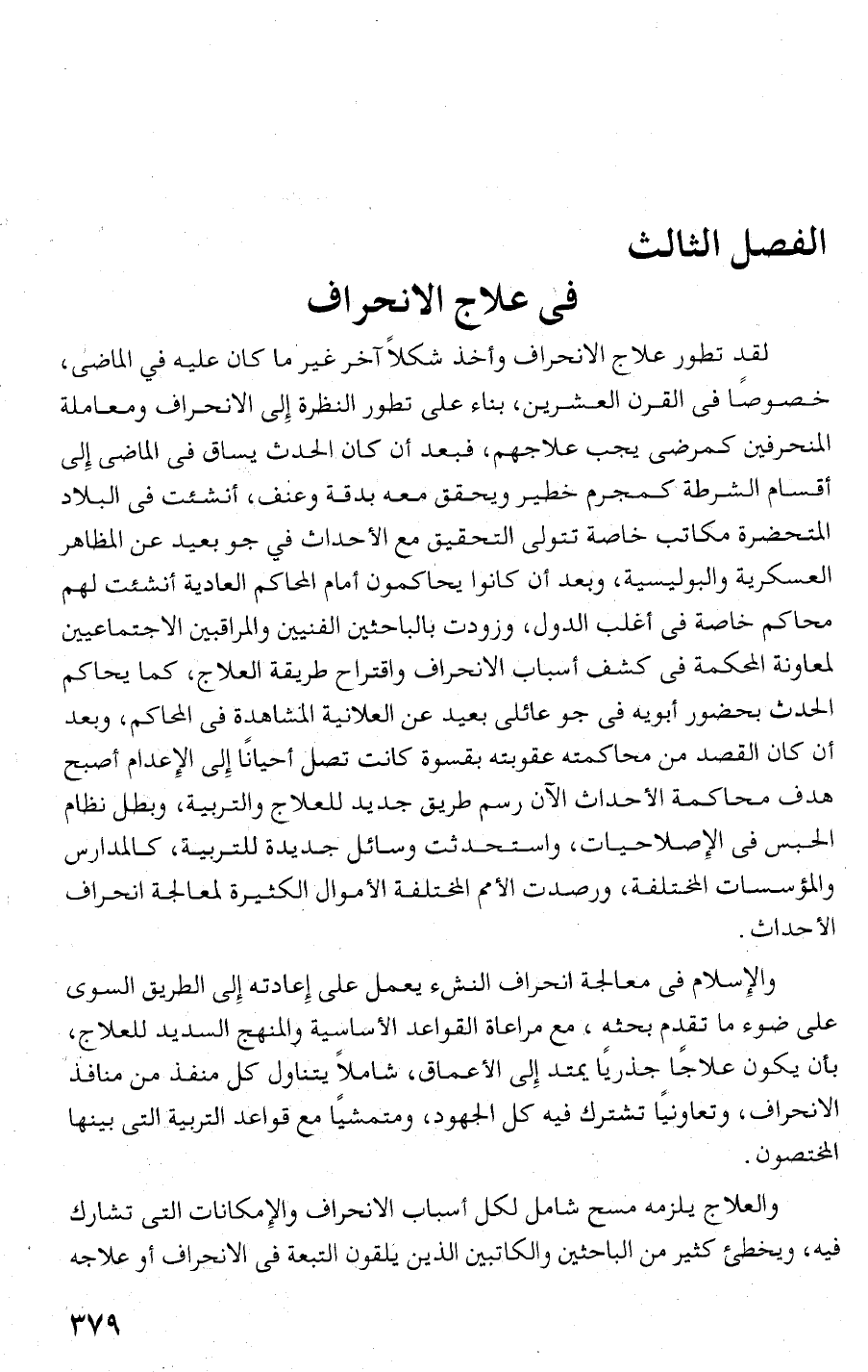 والعلاج يلزمه مسح شامل لكل أسباب الانحراف والإمكانات التى تشارك