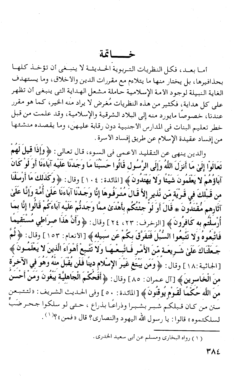 أما بعد، فكل النظريات التربوية الحديثة لا ينمغى أن تؤخذ كلها