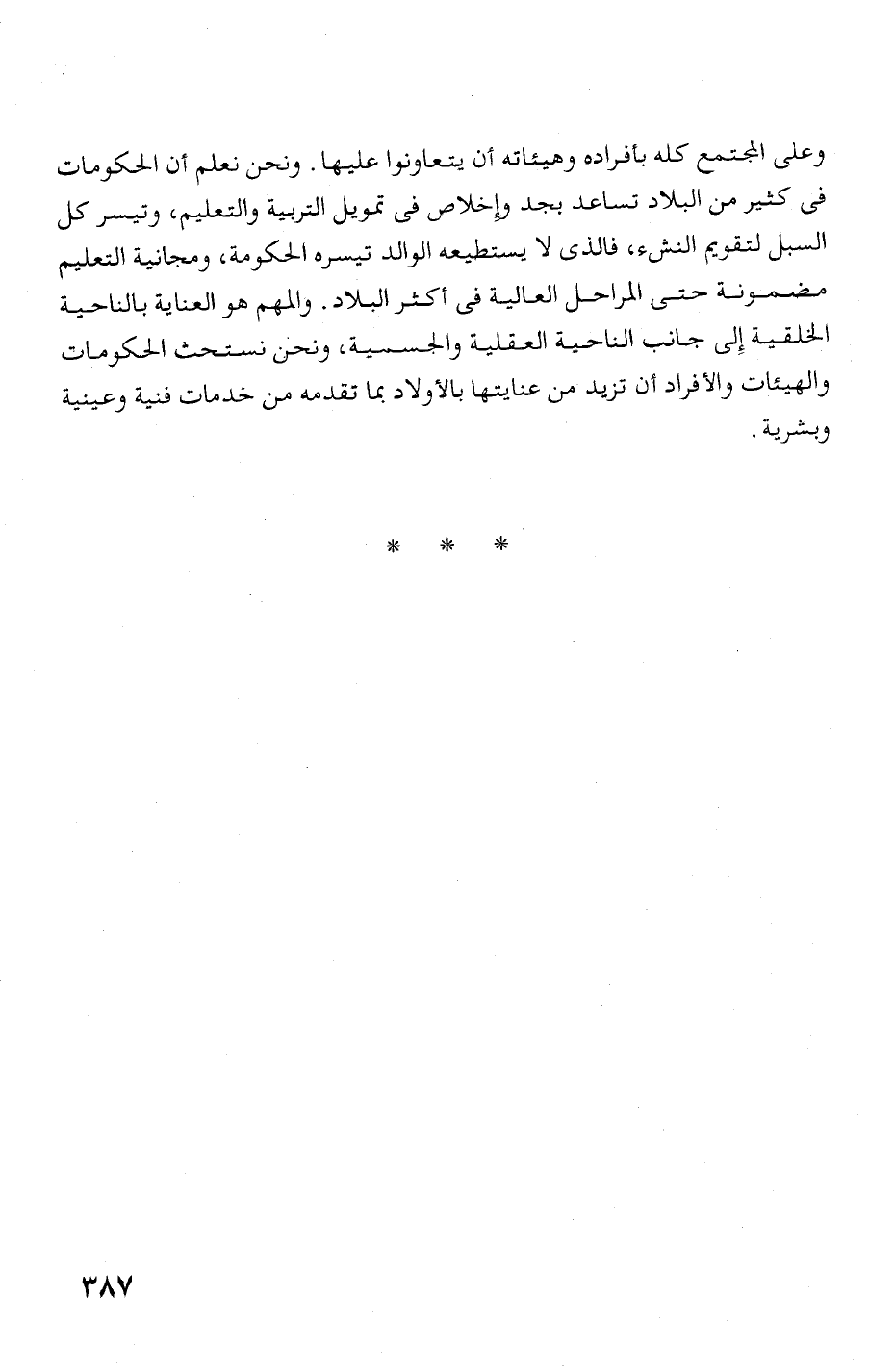 المسبل لتقويم النشء، فالذى لا يستطيعه الوالد تيسره الحكومة، ومجانية التعليم