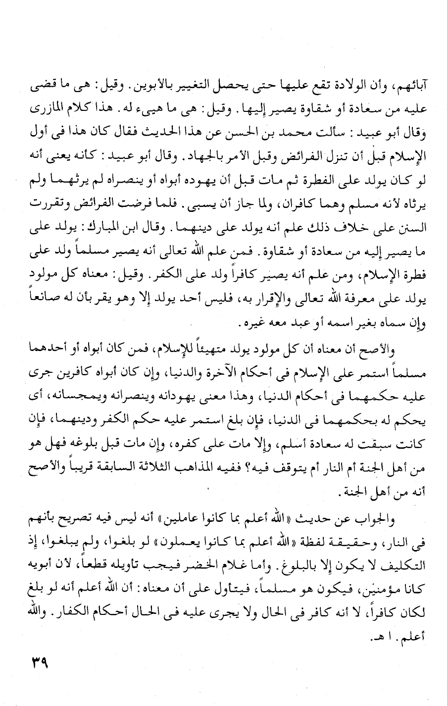ما يصير إليه من سعادة أو شقاوة. فمن علم الله تعالى أنه يصير مسلما ولد على