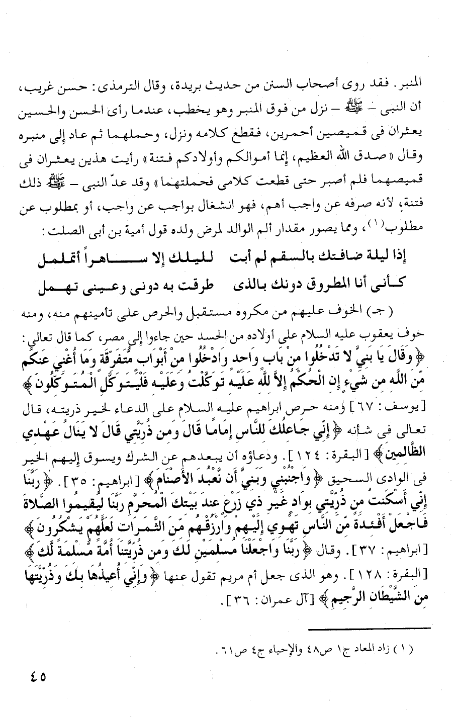 (1) زاد المعاد خ! ا ص 48 والإحياء خ! 4 صا 6.