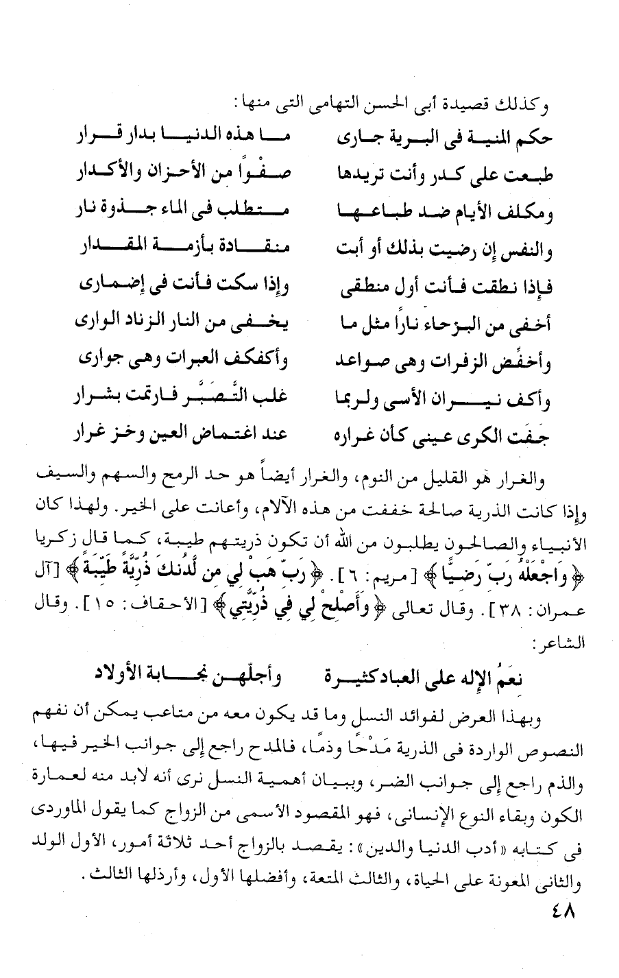 فى كتابه ((أ دب الدنيا والدين ": يقصد بالزواج أ حد ثلاثة أمور، الأول الولد