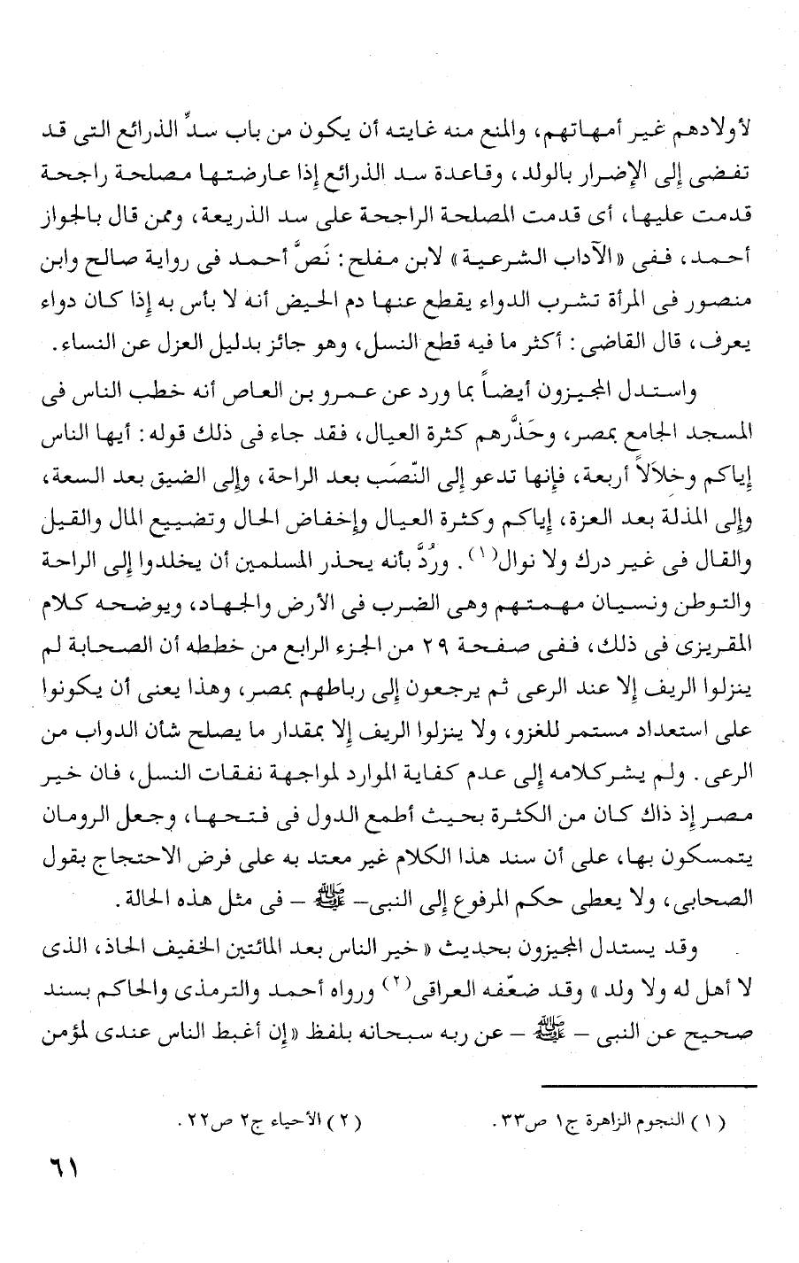 الرعى. ولم يشركلامه إلى عدم ثفاية الموارد لمواجهة نفقات النسل، فان خير