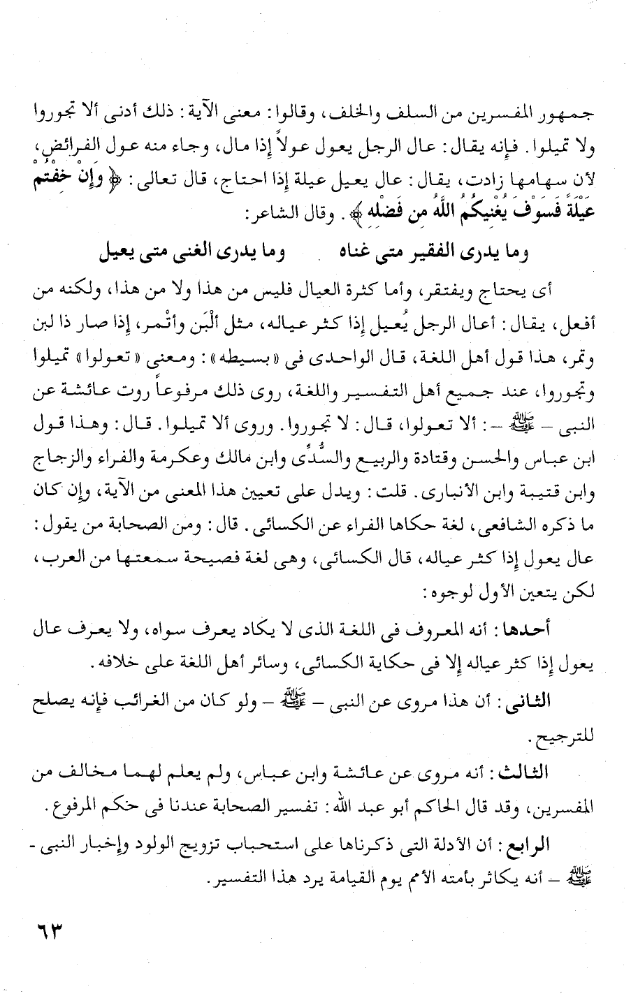 النبى - ح! هس! -: أ لا تعولوا، قال: لا تجوروا. وروى ألا تميلوا. قال: وهذا قول