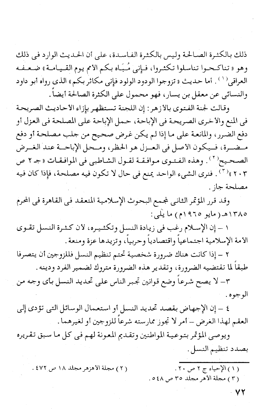3 - لا يصح شرعا وضع قوانين تجبر الناس على تحديد النسل بأى وجه من