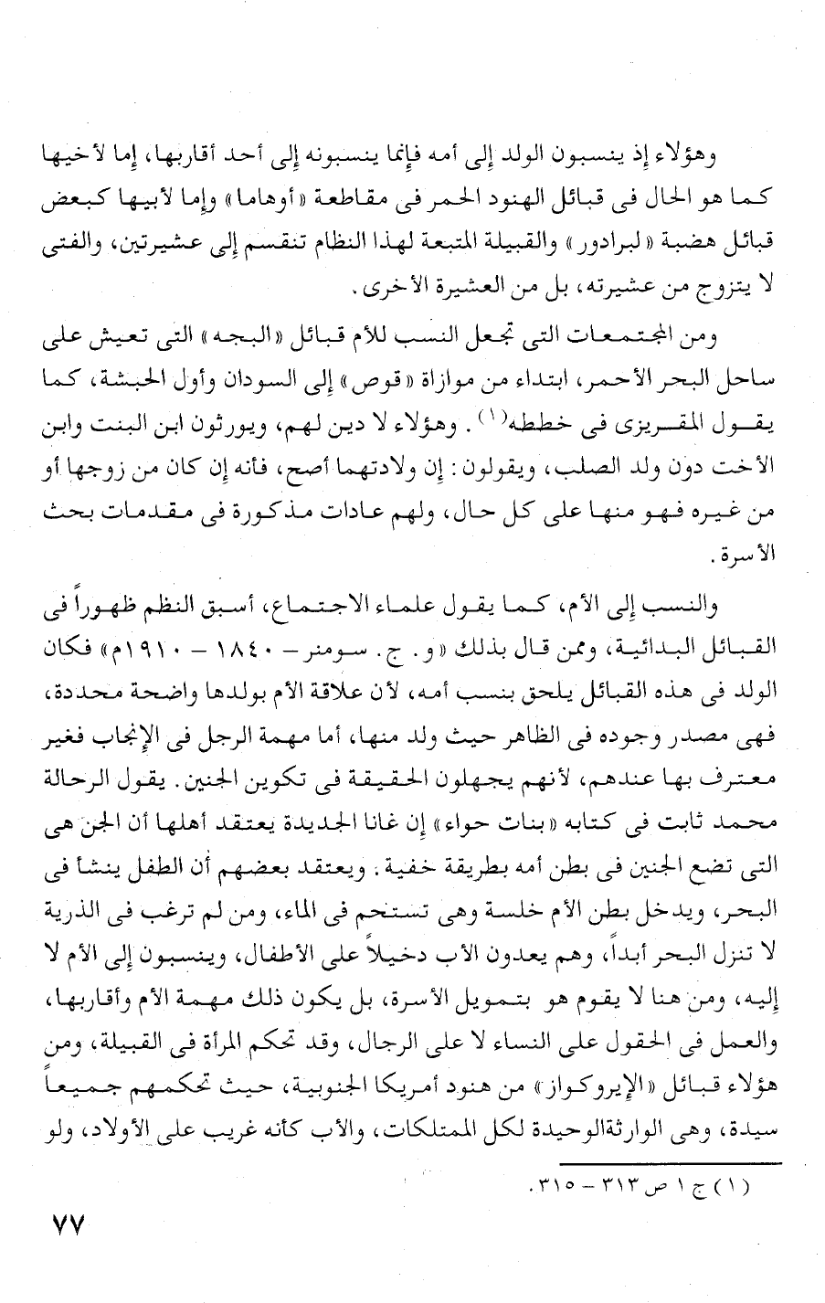 الولد فى هذه القبائل يلحق بنعسب أمه، لا ن علاقة الا م بولدها واضحة محددة،