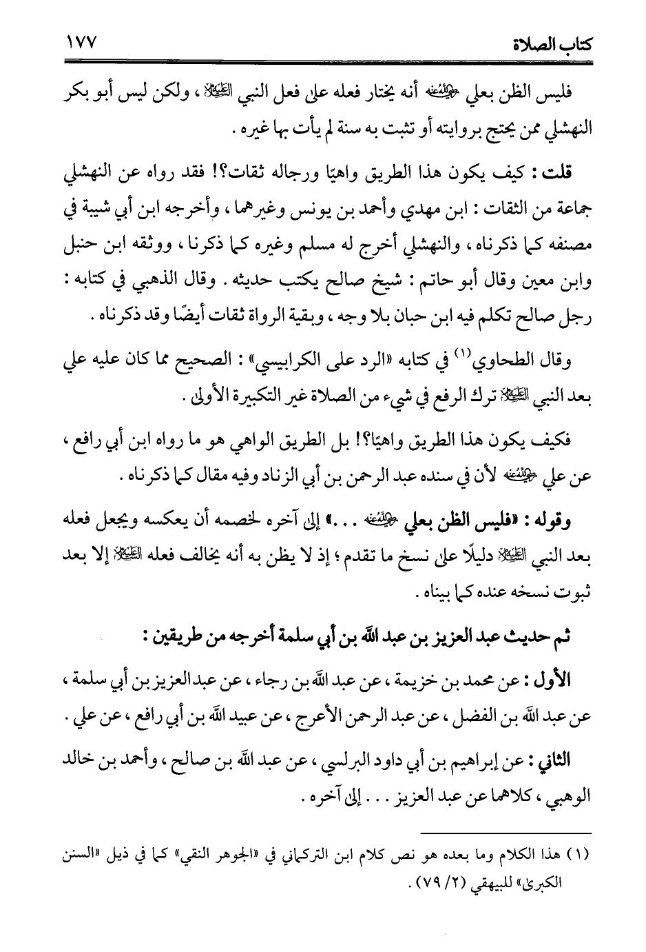 (¬1) هذا الكلام وما بعده هو نص كلام ابن التركماني في "الجوهر النقي" كما في ذيل "السنن الكبرى" للبيهقي (2/ 79).
