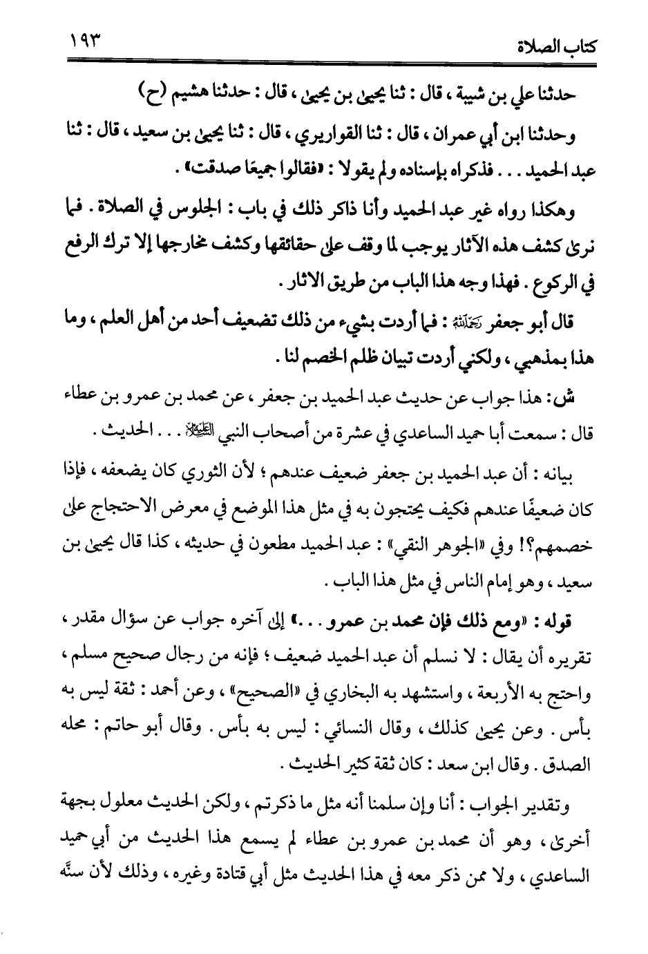 ش: هذا جواب عن حديث عبد الحميد بن جعفر، عن محمَّد بن عمرو بن عطاء قال: سمعت أبا حميد الساعدي في عشرة من أصحاب النبي - عليه السلام - ... الحديث.