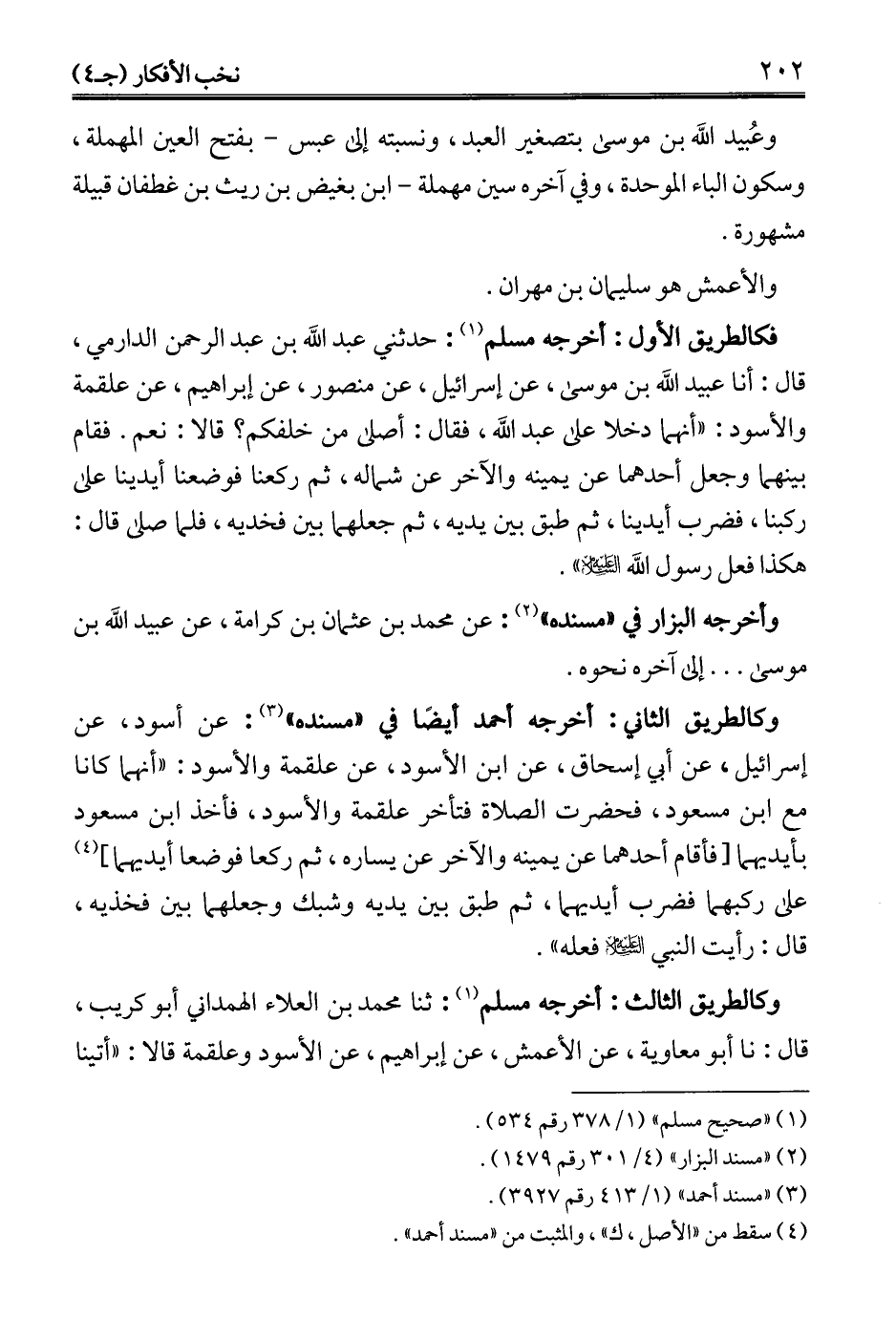 وكالطريق الثالث: أخرجه مسلم (1): ثنا محمَّد بن العلاء الهمداني أبو كريب، قال: نا أبو معاوية، عن الأعمش، عن إبراهيم، عن الأسود وعلقمة قالا: "أتينا