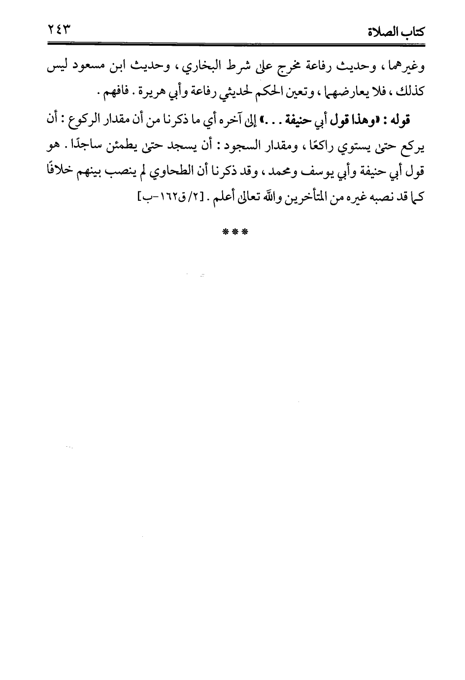 قوله: "وهذا قول أبي حنيفة ... " إلى آخره أي ما ذكرنا من أن مقدار الركوع: أن يركع حتى يستوي راكعًا، ومقدار السجود: أن يسجد حتى يطمئن ساجدا. هو قول أبي حنيفة وأبي يوسف ومحمد، وقد ذكرنا أن الطحاوي لم ينصب بينهم خلافًا كما قد نصبه غيره من المتأخرين والله تعالى أعلم.