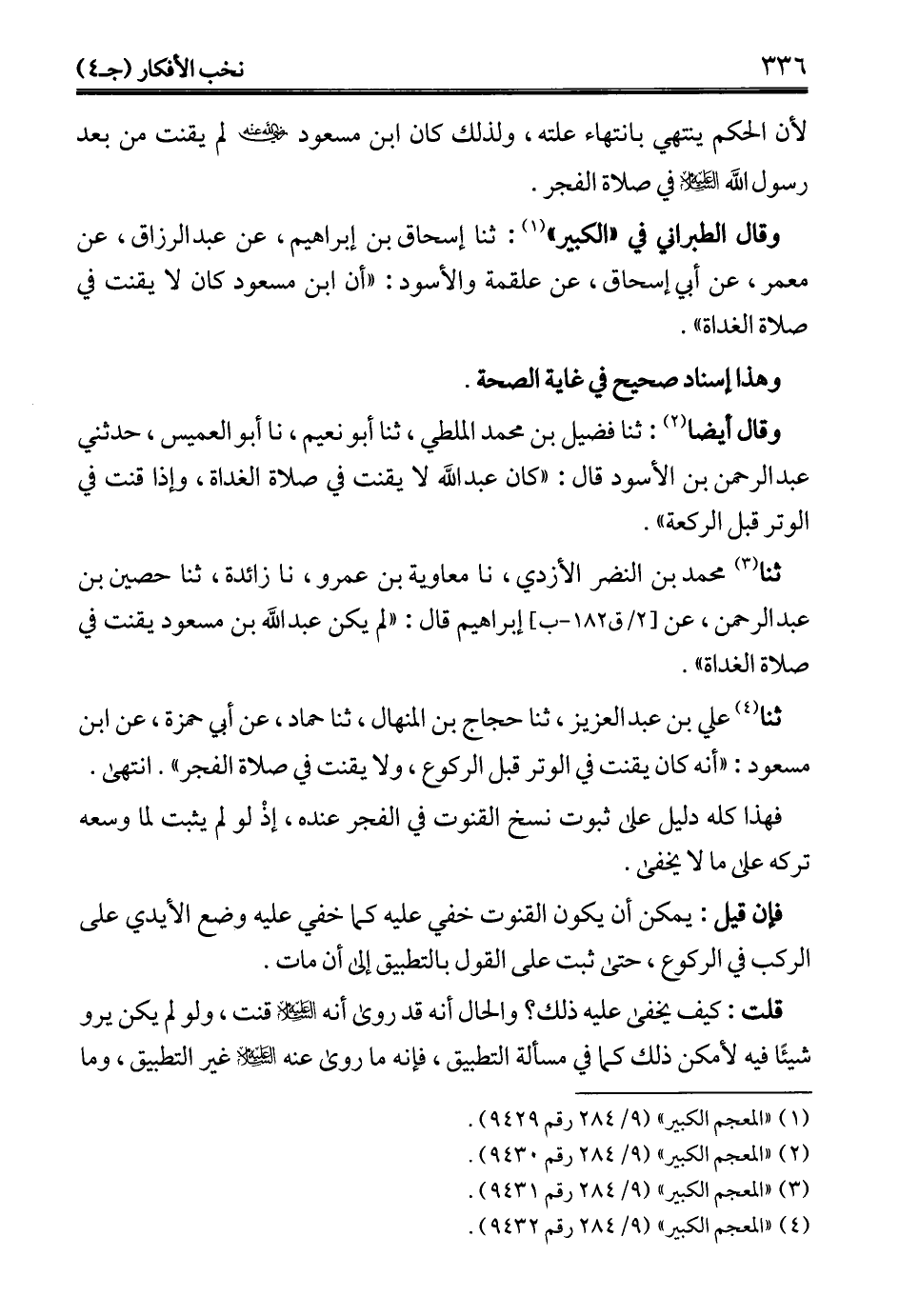 قلت: كيف يخفى عليه ذلك؟ والحال أنه قد روى أنه - عليه السلام - قنت، ولو لم يكن يرو شيئًا فيه لأمكن ذلك كما في مسألة التطبيق، فإنه ما روى عنه - عليه السلام - غير التطبيق، وما