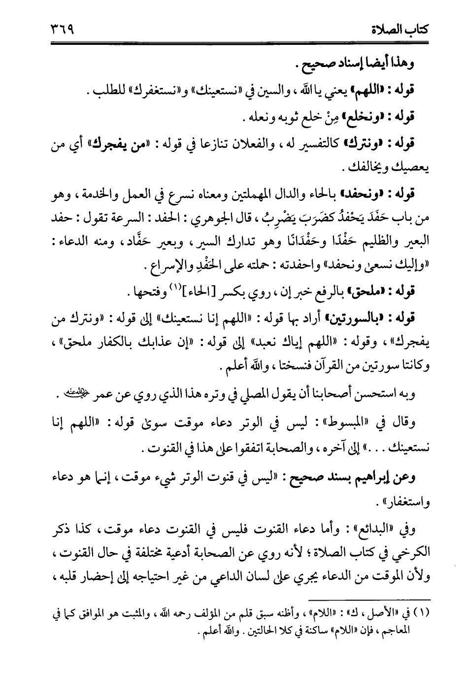 وقال في "المبسوط": ليس في الوتر دعاء موقت سوى قوله: "اللهم إنا نستعينك ... " إلى آخره، والصحابة اتفقوا على هذا في القنوت.