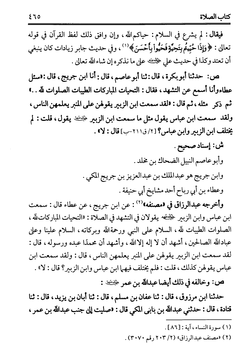 (¬2) "مصنف عبد الرزاق" (2/ 203 رقم 3070).