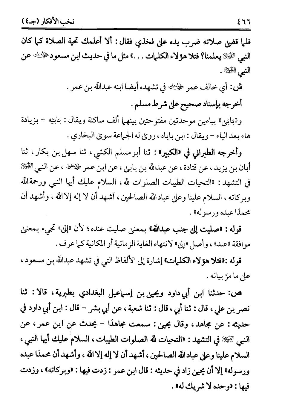 ش: أي خالف عمر- رضى الله عنه - في تشهده أيضا ابنه عبد الله بن عمر.