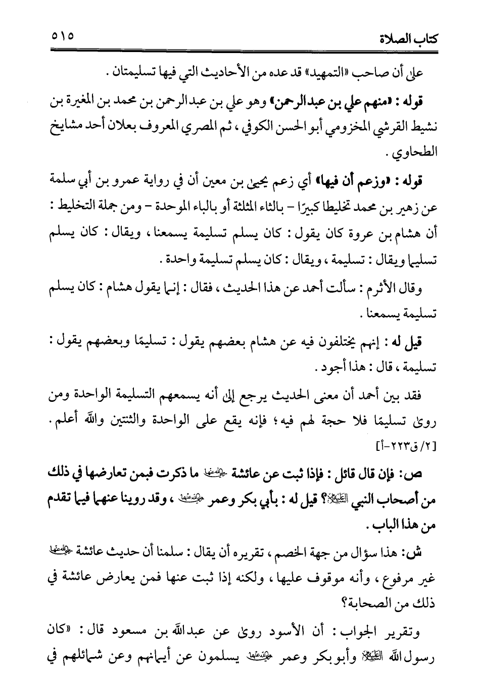 على أن صاحب "التمهيد" قد عده من الأحاديث التي فيها تسليمتان.