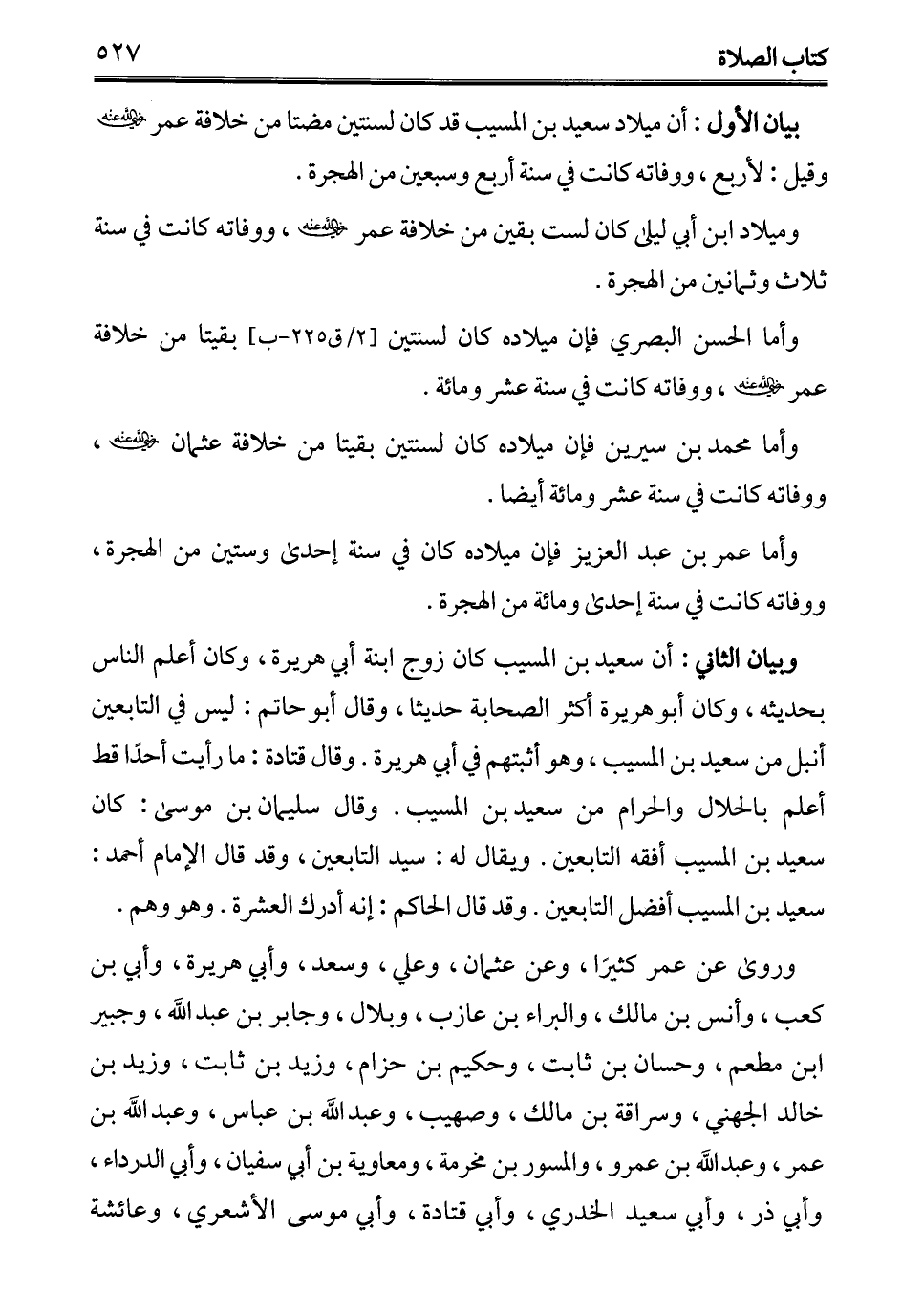 بيان الأول: أن ميلاد سعيد بن المسيب قد كان لسنتين مضتا من خلافة عمر - رضي الله عنه - وقيل: لأربع، ووفاته كانت في سنة أربع وسبعين من الهجرة.
