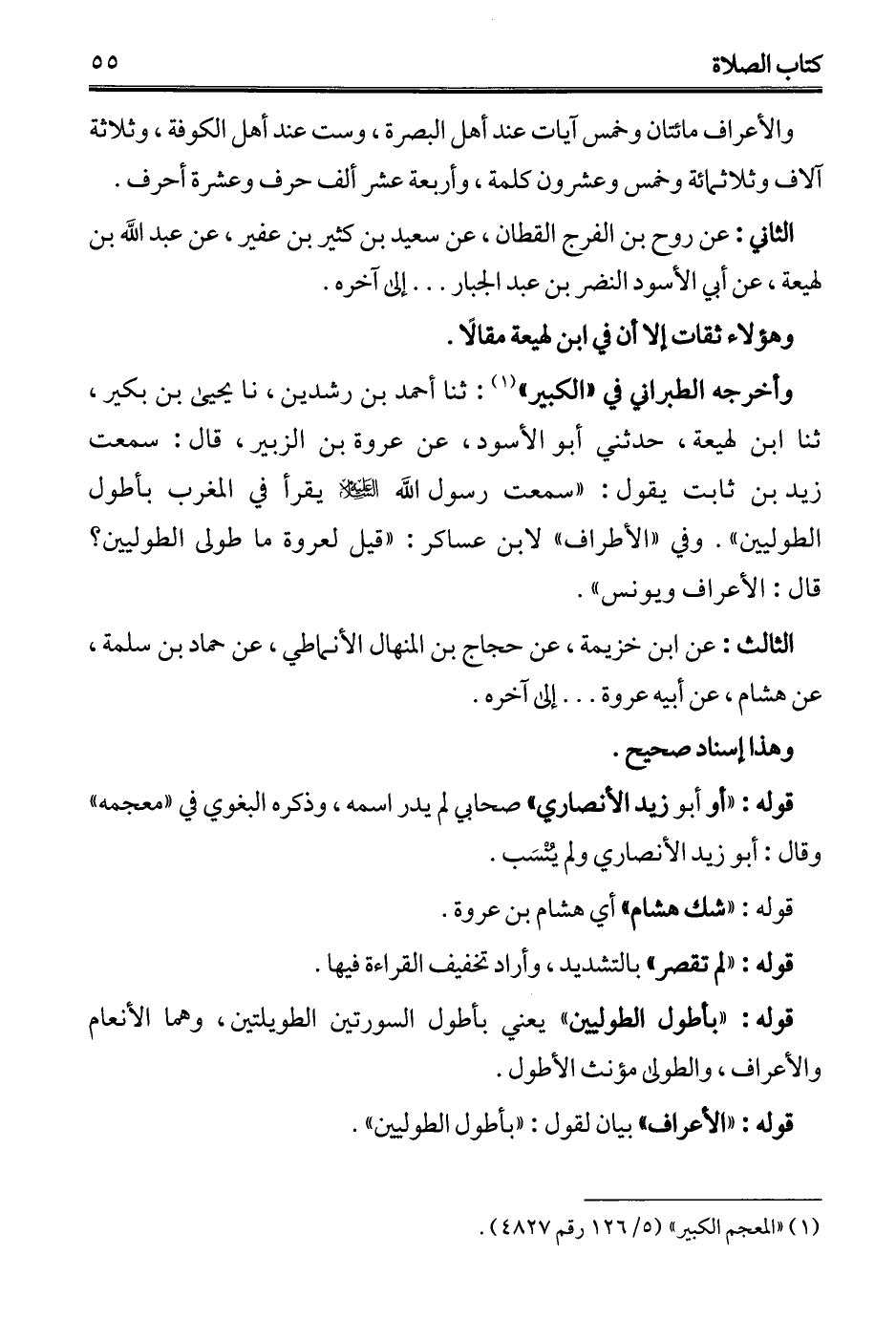وأخرجه الطبراني في "الكبير" (¬1): ثنا أحمد بن رشدين، نا يحيى بن بكير، ثنا ابن لهيعة، حدثني أبو الأسود، عن عروة بن الزبير، قال: سمعت زيد بن ثابت يقول: "سمعت رسول الله - عليه السلام - يقرأ في المغرب بأطول الطوليين". وفي "الأطراف" لابن عساكر: "قيل لعروة ما طولى الطوليين؟ قال: الأعراف ويونس".