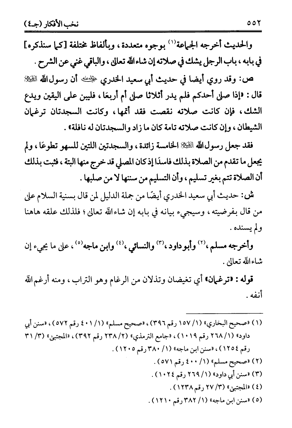 (¬1) "صحيح البخاري" (1/ 157 رقم 396)، "صحيح مسلم" (1/ 401 رقم 572)، "سنن أبي داود" (1/ 268 رقم 1019)، "جامع الترمذي" (2/ 238 رقم 392)، "المجتبى" (3/ 31 رقم 1254)، "سنن ابن ماجه" (1/ 380 رقم 1205).