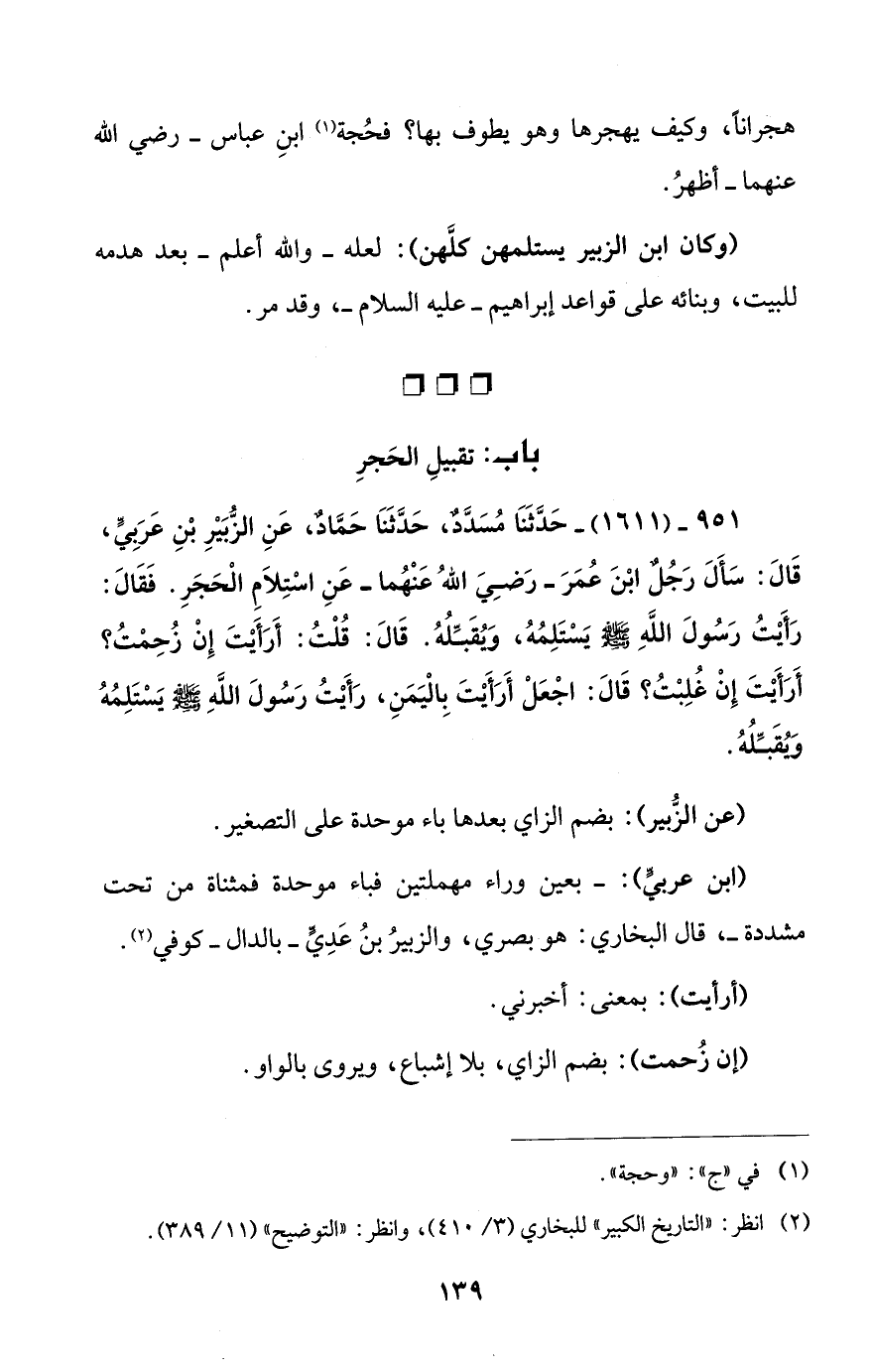 (عن الزُّبير): بضم الزاي بعدها باء موحدة على التصغير.