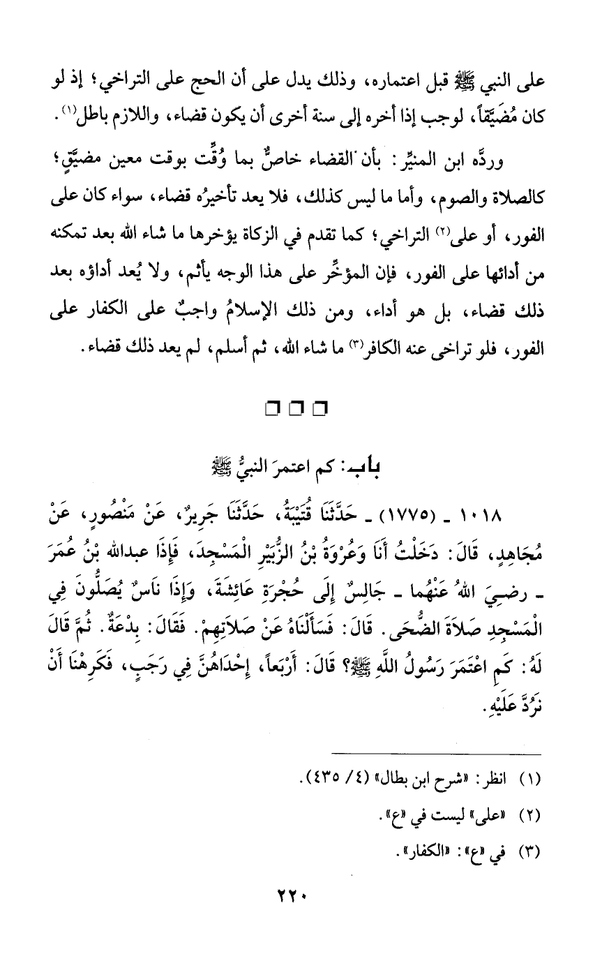 باب: كم اعتمرَ النبيُّ - صلى الله عليه وسلم -