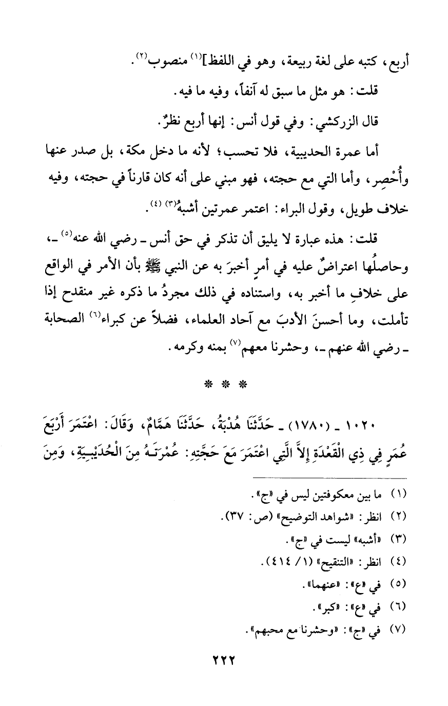 1020 - (1780) - حَدَّثَنَا هُدْبَةُ، حَدَّثَنَا هَمَّامٌ، وَقَالَ: اعْتَمَرَ أَرْبَعَ عُمَرٍ فِي ذِي الْقَعْدَةِ إِلاَّ الَّتِي اعْتَمَرَ مَعَ حَجَّتِهِ: عُمْرَتَهُ مِنَ الْحُدَيْبِيَةِ، وَمِنَ