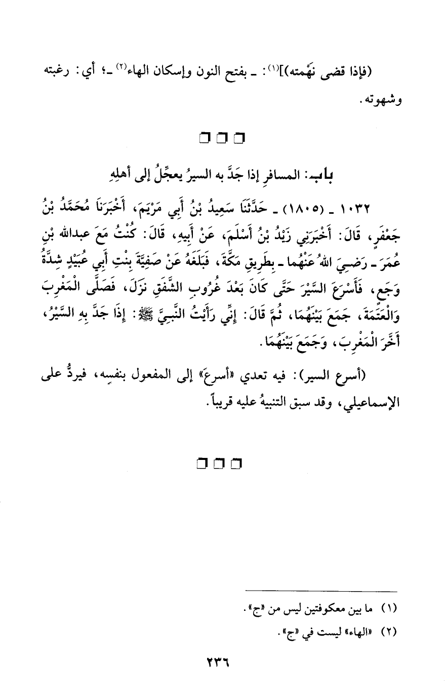 باب: المسافرِ إذا جَدَّ به السيرُ يعجِّلُ إلى أهلِهِ