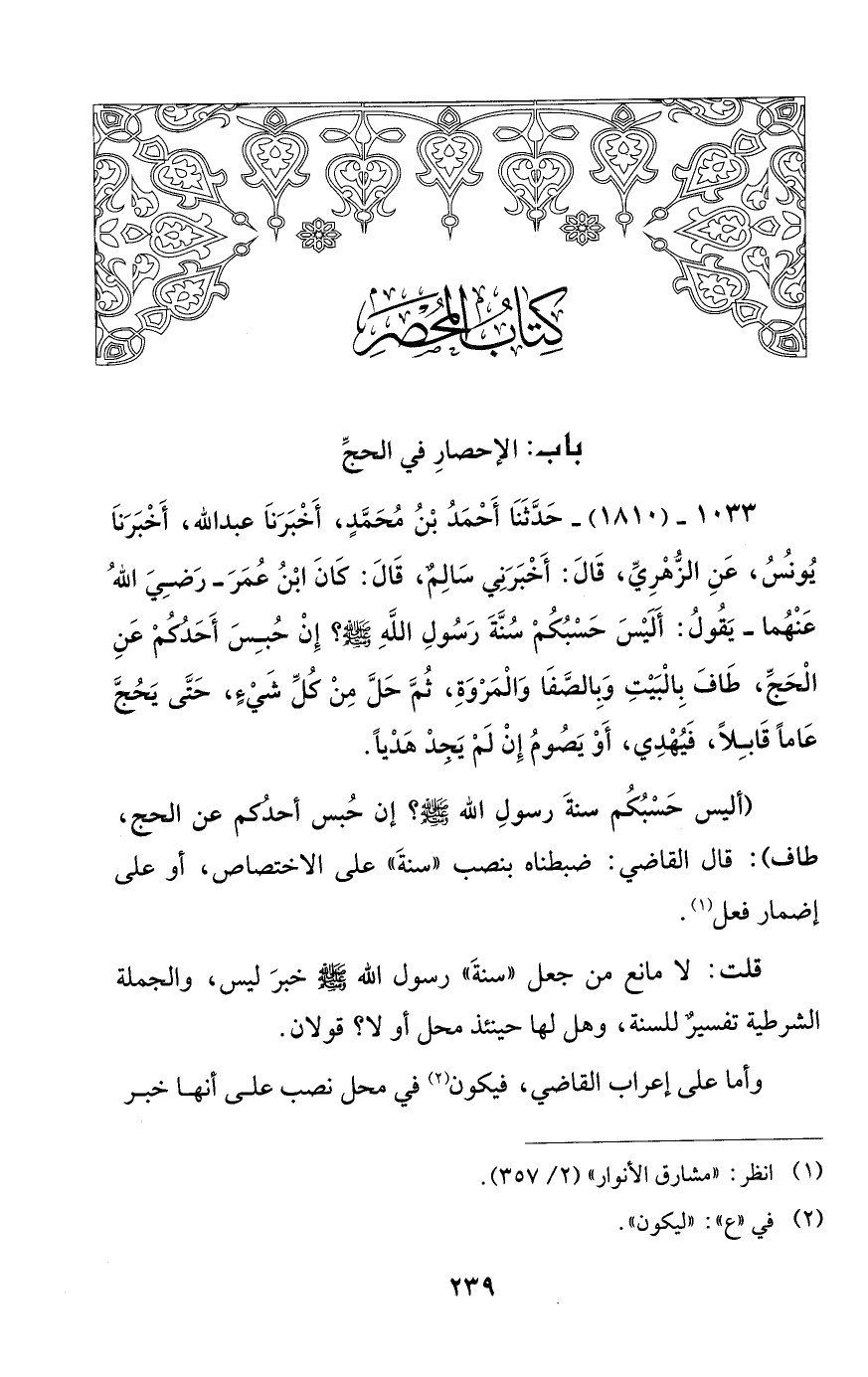 باب: الإحصارِ في الحجِّ